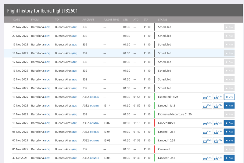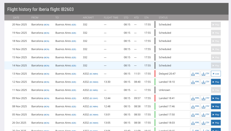 Pero ahí veo en el IB2603 que aparece sin info el vuelo del 11 de noviembre, que estimo es el de los pasajeros afectados que yo vi