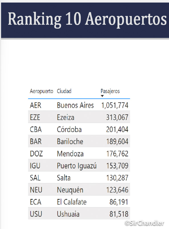 El top ten internacional, que cabe recordar ROSARIO está cerrado hasta fin de año. Fijate que poca diferencia hay entre Aeroparque y Ezeiza