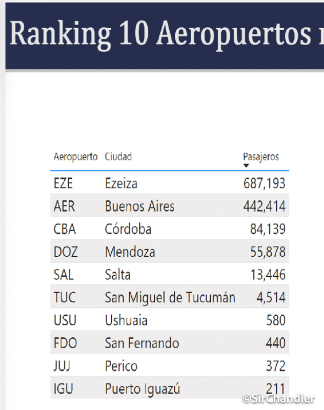 Para empezar pongo el top ten de los aeropuertos por pasajeros de cabotaje, lo que me motivó a poner la foto de portada sobre el segundo lugar: EZEIZA