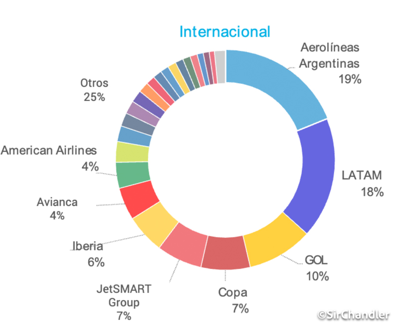 La torta de internacional total, deja a AR con un punto por encima de Latam, tercera Copa