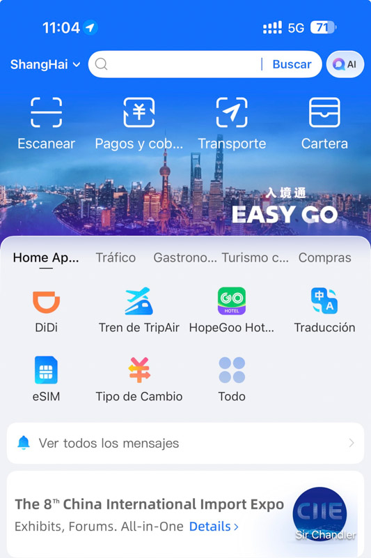 Captura de ALIPAY que indicaba que estaba en Shanghai (arriba a la izquierda), pero haré post de esto en breve