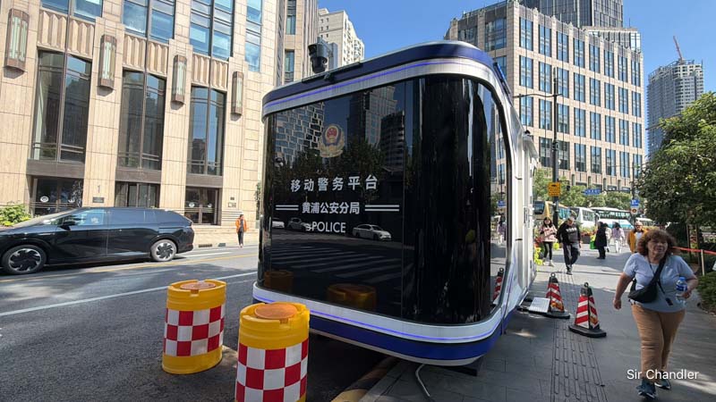 Mucha tecnología en muchos lados. Shanghai es muy modernosa y lo que se ve son soluciones en muchas cosas, como estas cabinas de la policía