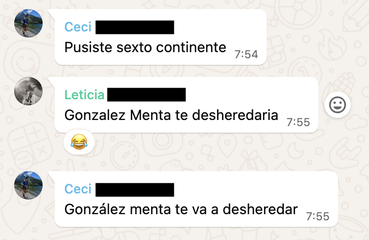 Al rato en el grupo de hermanos saltó el problema… ¿COMO QUE PUSISTE SEXTO? y citaron a la mejor profesora que tuve en toda la secundaria del Comercial 19 de Caballito… SUSANA GONZALEZ MENTA.