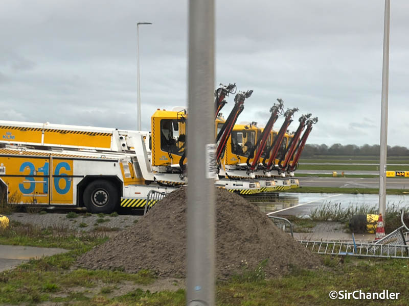 Pasamos por una fila doble de los camiones que se ocupan del descongelamiento preventivo de los aviones. Casualmente unos días después el IG de KLM mostraba que los comenzaban a usar en la temporada