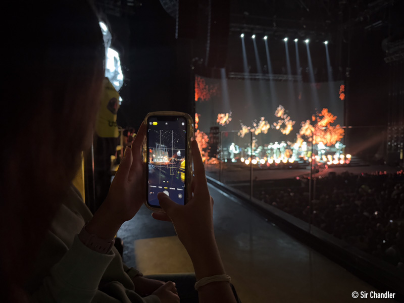 Si bien el Movistar arena es hasta ahora lo mejor que hay y dejó en claro la necesidad extrema de que en Buenos Aires existiese un estadio de este tipo, a mi la verdad que me decepcionó por la mala inclinación de las plateas. Desde la mejores ubicaciones se ve gran parte del escenario a través de la baranda de vidrio, ni hablar si el artista camina hacia los laterales de el mismo. En la ante última foto se puede ver a una chica sentada en la fila 1 de platea lateral tomando una foto del escenario totalmente a través del vidrio. Para mí, imperdonable que eso ocurra desde esa ubicación. En las plateas altas es peor.
