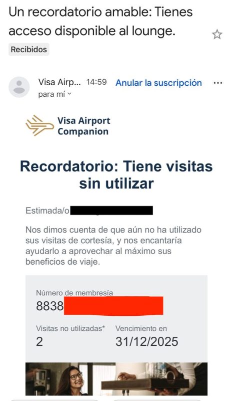 Así fue lo que mandó Visa Airport Companion o Dragon Pass a muchos argentinos en estos días. No recuerdo si lo hicieron el año pasado