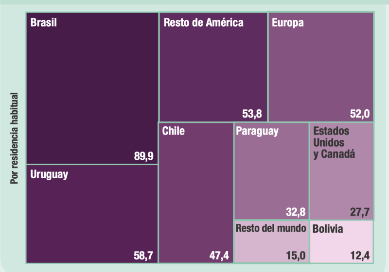El peso de cada país en los arribos, siendo Brasil el más fuerte