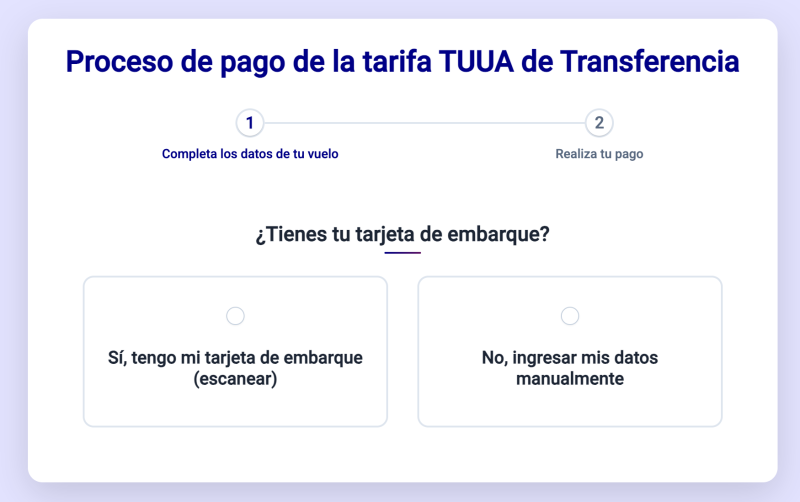 Eso lleva a este link https://pagotuua.lima-airport.com/ donde aparece esta opción con el escaneo del boarding si lo tienen o ingreso manual de datos