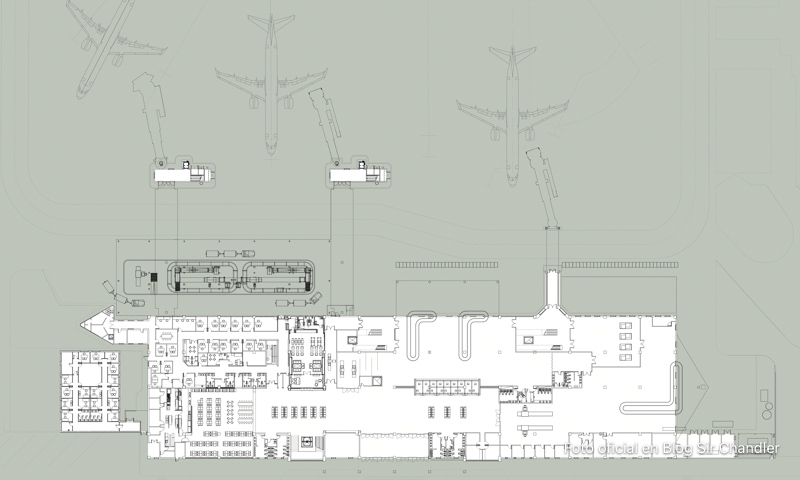 Y lo que veo, a simple vista además de la ampliación del área de embarque que crece hacia la plataforma, es que corren los espacios de escaleras que hoy cortan la circulación y achican mucho los espacios. Por eso también que esa manga del medio se vaya al extremo acomodaría mejor a la gente