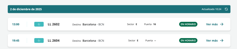 En el sitio de Aeropuertos Argentina hoy se ve que los dos vuelos que tienen salen con el código nuevo, tanto el mencionado LL2602 y el otro LL2604
