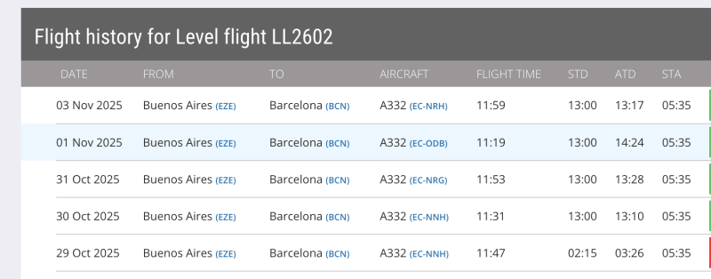 En flightradar se vio hace unos días, cuando tuvieron problemas operativos y varias demoras que fueron reportadas por los lectores, que habían usado el LL pero que volvieron al IB. Como ejemplo este que ahora es el LL2602. Casualmente el del 29 de octubre fue uno de los demorados