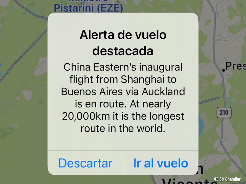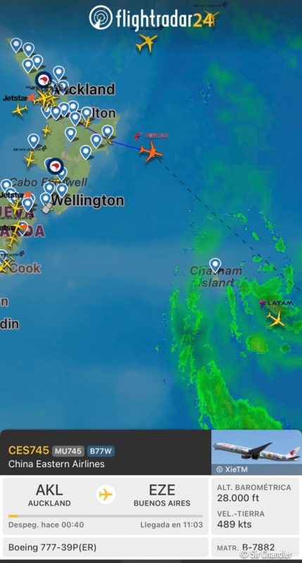 Esta tarde llegará a Ezeiza el primer Boeing 777-300 de China Eastern desde Shanghai, en lo que es el vuelo más largo del mundo. Y si bien algunos se confunden porque no es el vuelo DIRECTO más largo del mundo al hacer escala en Auckland, hoy la alerta que tiró Flightradar24 lo decía bien claro. Son cerca de 20.000 km de distancia… una locura.