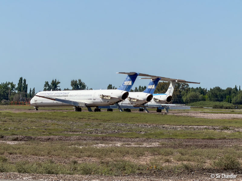 Dato de color, el aeropuerto de San Juan es el «ideal» en la Argentina para preservar aviones por su temperatura y humedad (poca) por lo que hace AÑOS están estos tres MD estacionados que eran de Aerolíneas Argentinas. Entiendo que ahora son de otra empresa que los compró por repuestos o están con algo judicial, vaya a saber… pero no los mueven.
