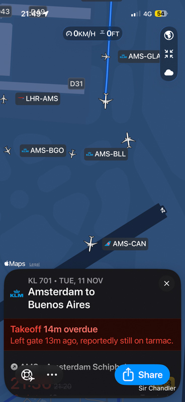 Amsterdam tiene un taxeo muy largo porque tiene varias pistas y una está bastante lejos