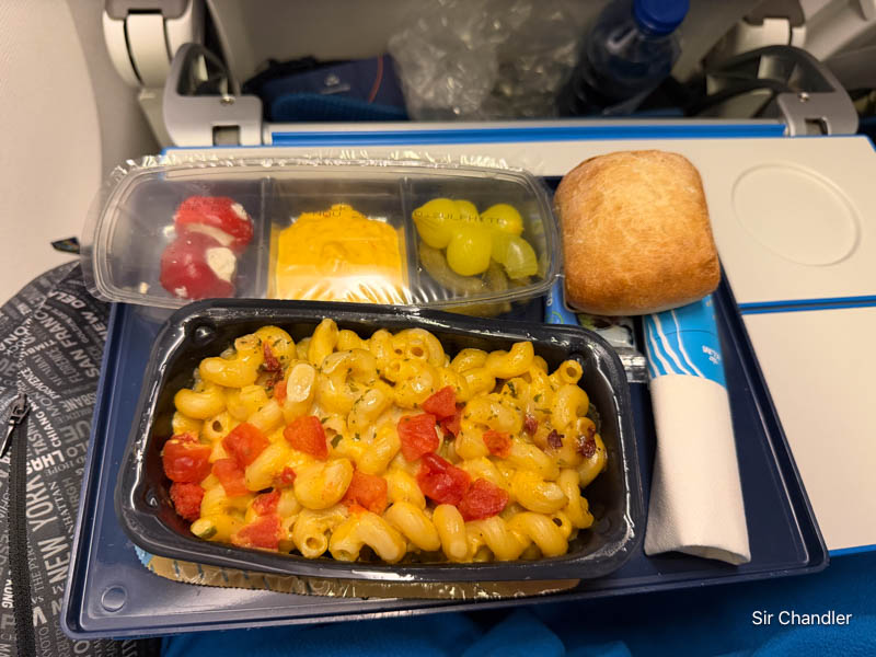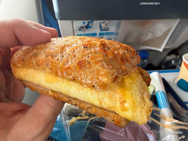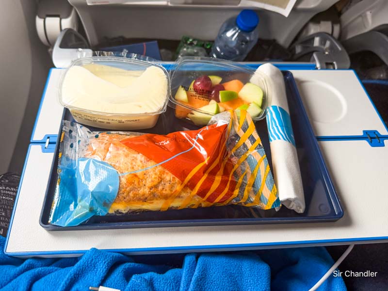 Unas horas después llegó el desayuno, que creo objetivamente es de los más poderosos entre las europeas que vuelan a la Argentina para clase turista. Ese pote cerrado es de yogurt de durazno, muy sabroso. Las frutas frescas son variadas y el paquete caliente es…