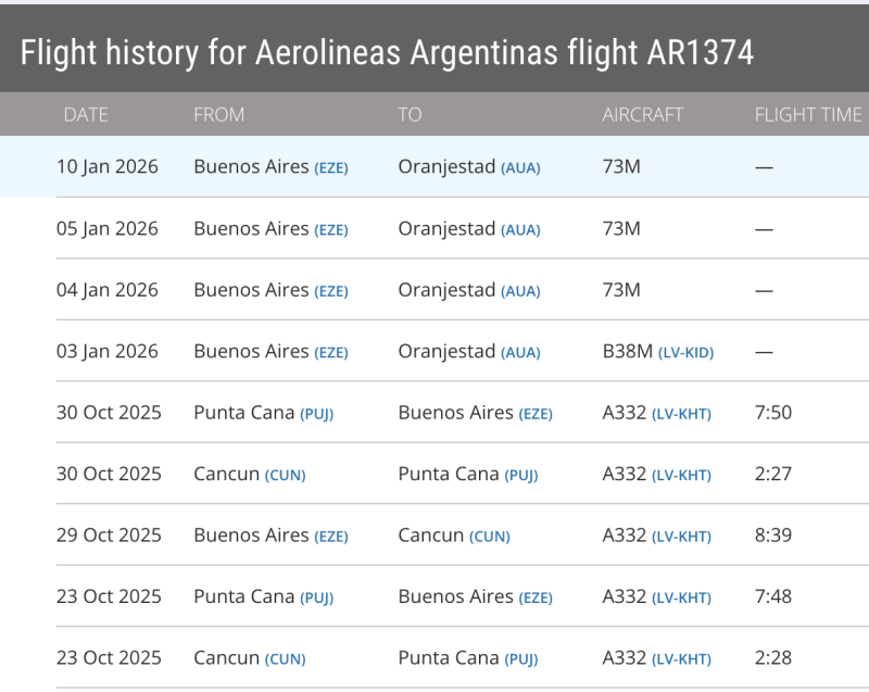 Ese primer vuelo, y todos los que le seguirán, tienen que esquivar el espacio aéreo venezolano, porque el gobierno de ese país prohibió que aviones argentinos volaran por ahí. Tiempo después el gobierno de Estados Unidos también informó que le cerraba el espacio aéreo y por eso es que por ejemplo Arajet no está llegando de manera directa a la Argentina, pero lo pondré en otro post.