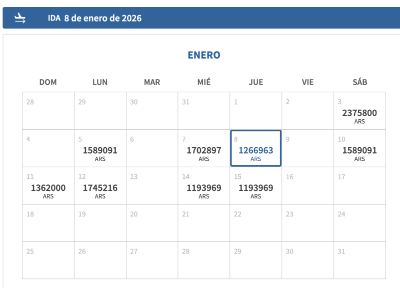 El vuelo arrancó muy bien en ventas y por eso informaron en su momento que lo estiraban en la operación hasta abril. Si hoy buscamos desde Buenos Aires nos da opciones de 4 días en la semana porque combina algunos con la escala en Córdoba, que es con otro avión, no el mismo que lo hace finalmente. Pero estos eran los valores que vi por tramo DE IDA