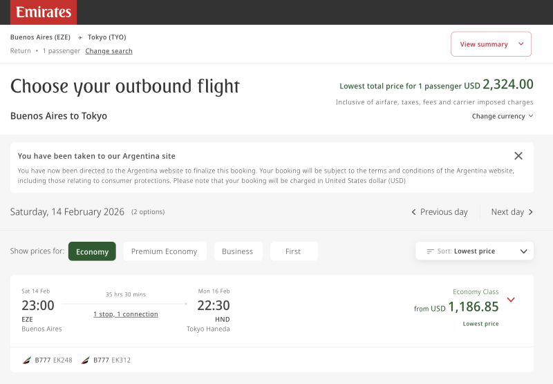 Un problema que tuvo Emirates desde que volvió a operar en el país es que el sitio emitía todo en pesos argentinos y eso no permitía evitar el impuesto PAIS y la percepción pagando con USD.