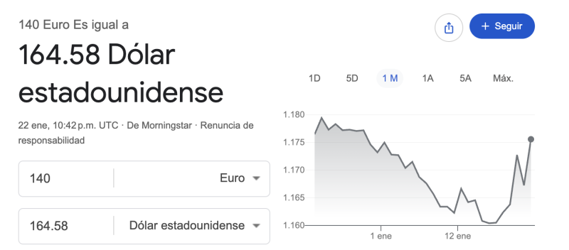Según google, ayer 140 euros eran 164,58, O sea no quedó lejos de eso