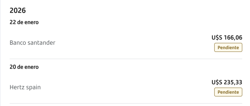 Voy a ver los movimientos de la visa del Santander y ALCOYANA ALCOYANA el mismo monto exacto. Dejo abajo que se ve la garantía tomada por el auto que alquilé al llegar (de 200 euros)