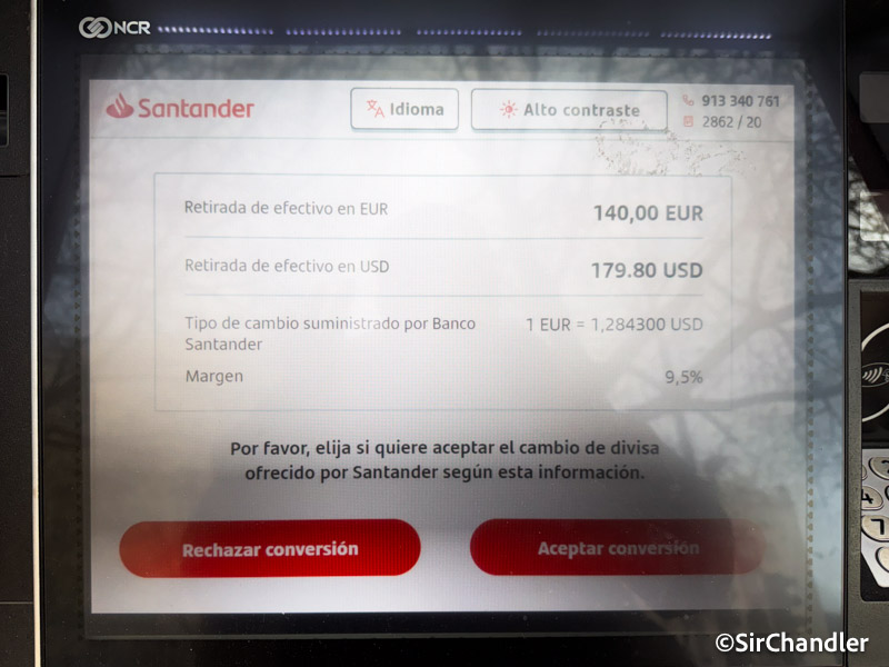 Por lo que en un cajero del Santander por Madrid hice la prueba con distintas tarjetas y es lo que cuento en este post, con los COSTOS de la conversión automática. Seguro en algunas semanas tendré el costo total por el uso del cajero o lo que me cobró mi banco, porque el Santander ahí directo… no cobró nada.
