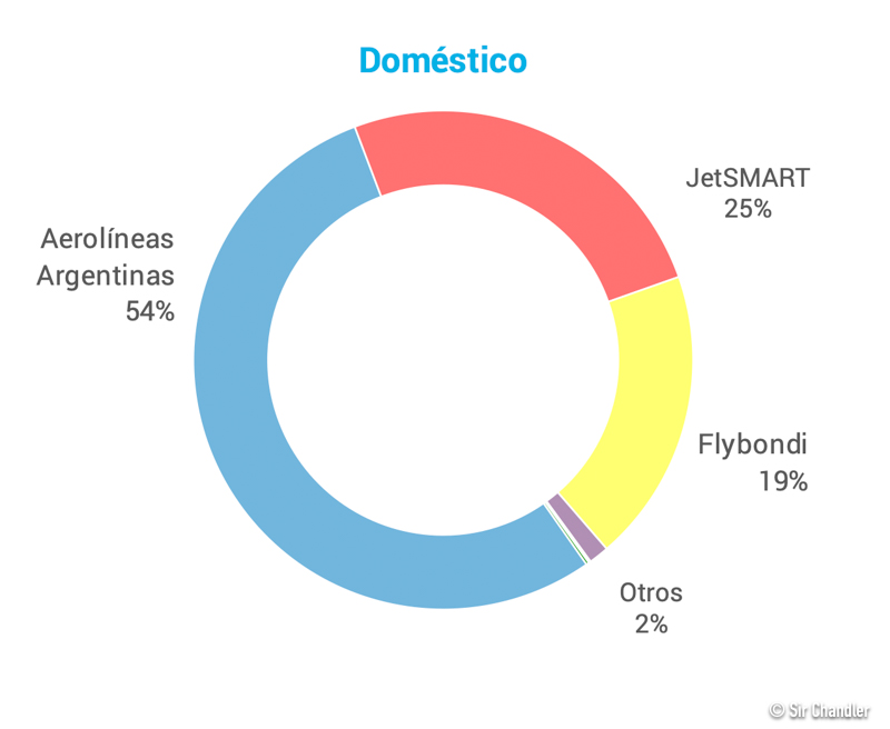 No deja de sorprenderme que constantemente Aerolineas viene perdiendo participación en vuelos nacionales, ya esta en 54%. No se si es finalidad de la empresa perder participación para concentrarse en determinados lugares pero teniendo en cuenta la cantidad de aviones y destinos que tiene ha perdido demasiado