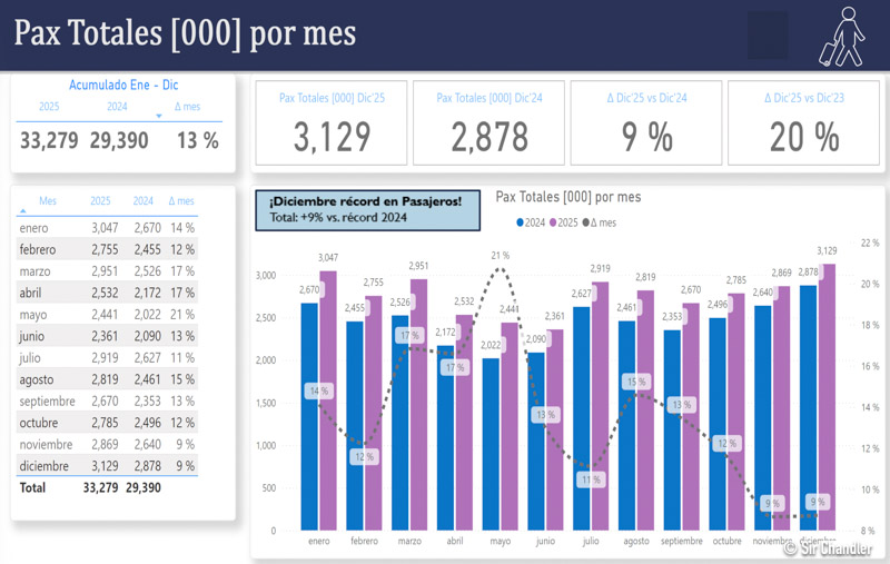 Hace pocos días ANAC publicó su informe de diciembre 2025, una de las entregas más tardías de los últimos meses y eso que venimos ya bastante demorados. Pero los números son buenos en general marcando crecimiento en cabotaje e internacional.