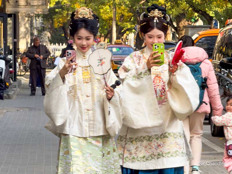 Y al igual que en las ciudades más chicas, muchas chinas estaban con ropas tradicionales. Algo que vi en todo el viaje. Pero como un gran evento, como un paseo entre amigas