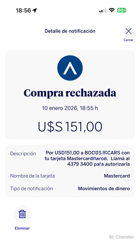 Pasa seguido Sir, al menos los bancos como mencionaste ahí como Santander, también ICBC, te llega el mail y la notificación de la app para autorizar el pago rechazado hace segundos. Aunque de todas formas este método no siempre funciona, ya que varias veces le daba a autorizar (pregunta si fuiste vos quien lo hizo), y en el acto figuraba que llame para autorizar la compra. También presencial me pasó en Hallandale una vez, compra de US$315, que no me pasó. Y luego la cajera me dice: “Ah, con las tarjetas Argentinas aquí siempre dividimos la compra”, y así fue pasando de a varios consumos hasta igualar el monto de la compra.