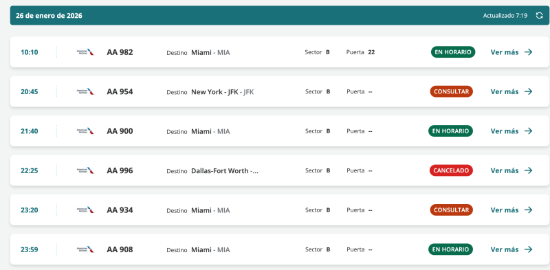 Pero para hoy figura CONSULTAR y el Dallas está cancelado directo según el sitio de Aeropuertos Argentina- Otro de Miami figura CONSULTAR