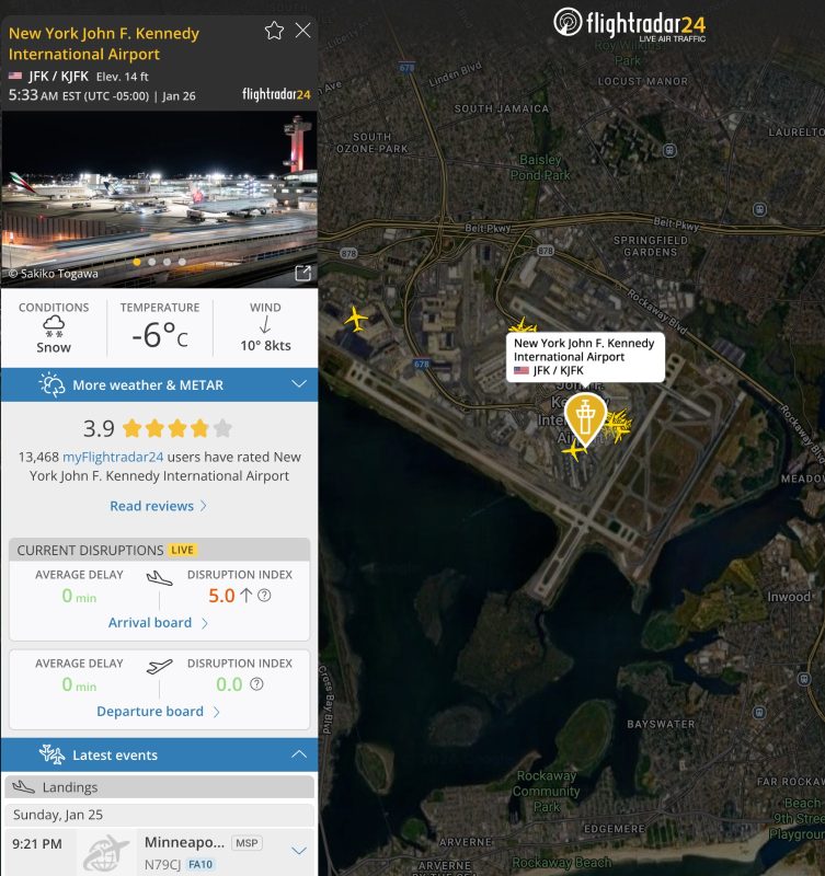 Por lo que veo esta mañana el JFK está parado… y eso es tremendo. Figuran que llegan algunos vuelos pero con demoras por lo que seguramente el panorama es que se vaya abriendo. Pero esto lleva a la complicación de los vuelos por varios días por delante.