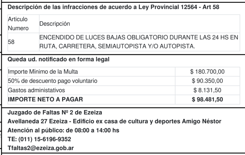 Como me mandaron la multa estando de viaje, no me pude acercar a la casa «Amigo Nestor» para pelear esta multa, porque me vence el 12 de febrero y no llego
