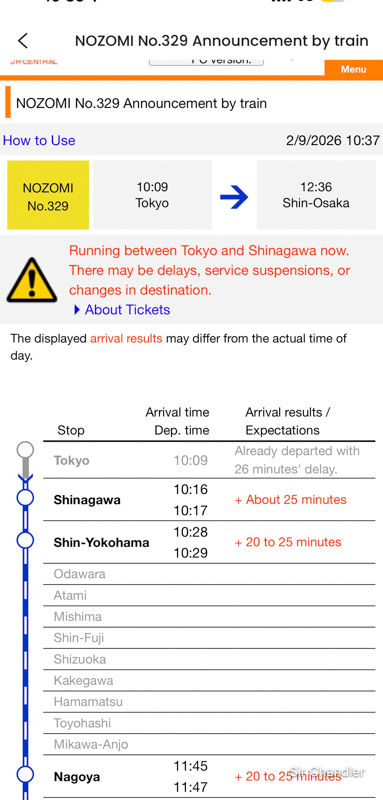 Ese día sorprendentemente, los trenes estaban demorados!!!! por fuerte caída de nieve, Justo en ese momento que tomé la foto en el cartel no lo decía, pero en el video se verá que hablaban de hasta 25 minutos de demora