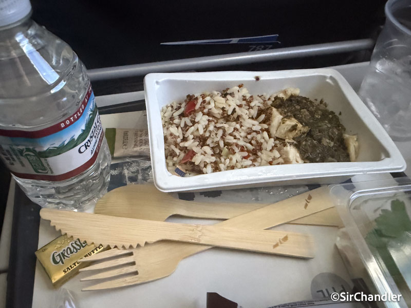 Una hora y media aprox antes de aterrizar un último servicio con algo parecido a un desayuno. Había para elegir y yo fui por los huevos revueltos… pero venía con una mezcla poderosa y algo picante