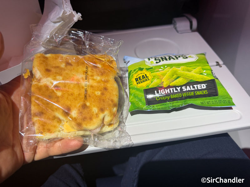 Había un sandwich que estaba medio congelado (literal) y un snack vegetariano