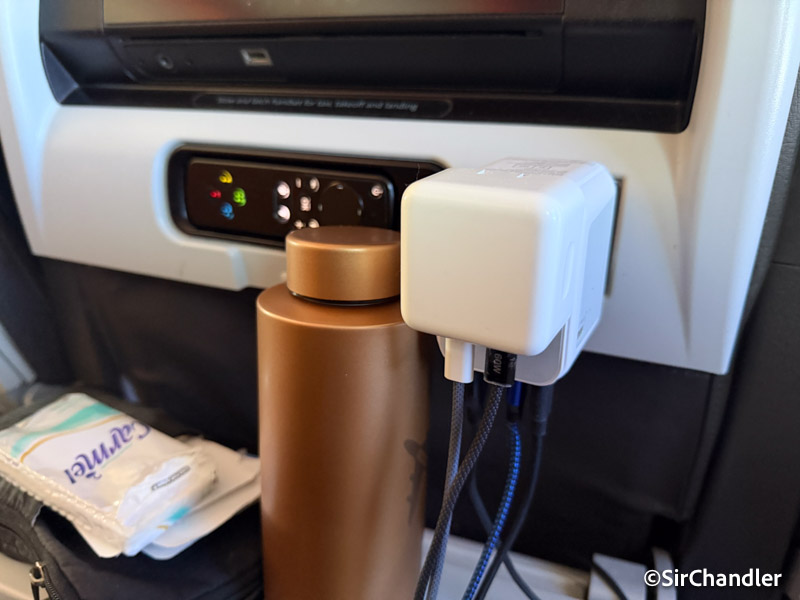Lo bueno de estas cabinas de American es el enchufe a la mano
