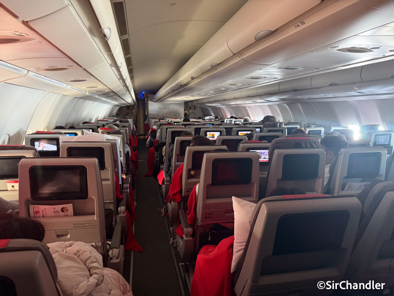 No estaba llenísimo, porque había algunos pasajeros acostados en asientos libres