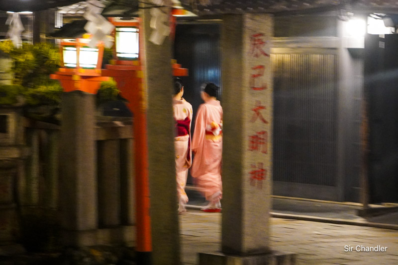 En este tour cuenta un poco sobre las geishas que se preparan en las academias que hay en ese sector, por años. Toda la tradición, pero también como hoy ganan fortunas con sus presentaciones.