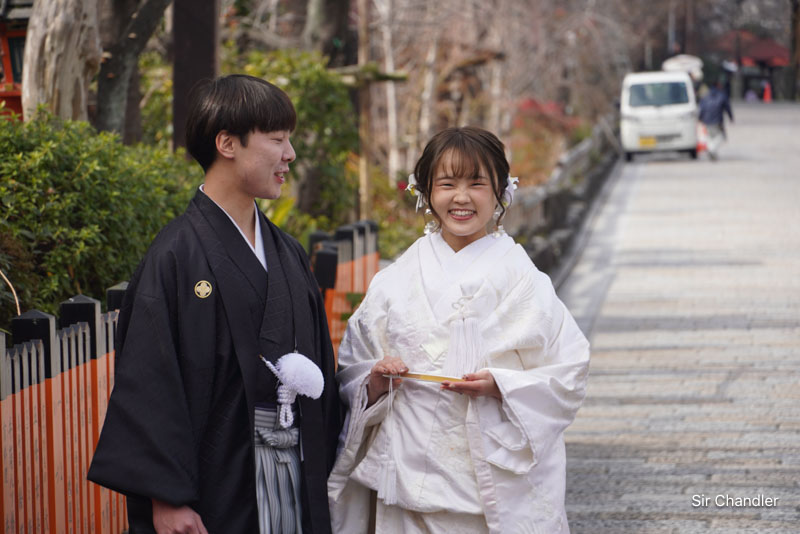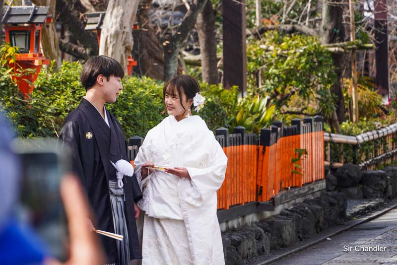 Pero también están los turistas, muchos de ellos japoneses o chinos, que también están haciendo sesión de fotos, quizás por algún casamiento. Y en este caso se dio algo muy simpático que la chica al ver a los turistas como que se puso a posar