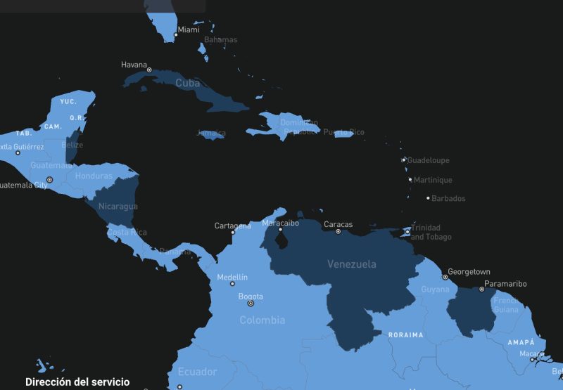 Esos machones actualmente quedan sobre Cuba, Venezuela y Nicaragua. Porque con Surinam que también aparece dice «disponible en 2026» lo mismo con Belice