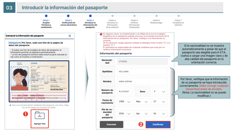 Tiene un sistema que con la cámara del celu o de la computadora hace la lectura de los datos del pasaporte y anda muy bien. Acá está explicado https://www.k-eta.go.kr/portal/board/viewboarddetail.do?bbsSn=301078