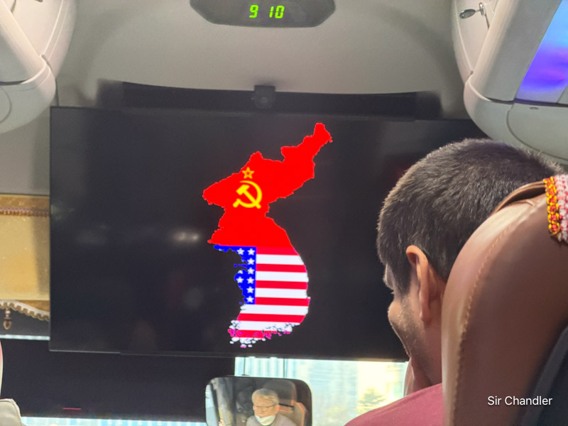 El viaje hasta la frontera lleva un par de horas, pero en el trayecto el guía iba contando la historias de las coreas en si, la guerra, las diferencias. Realmente muy interesante para meterse en contexto