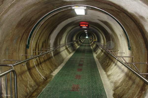 Lo concreto es que ahí se puede bajar pero no tomar fotos ni video y es simple: uno pasa por un control de metales muy riguroso. Esta foto la saqué de internet. Igualmente no se dimensiona lo que es… ese túnel lo hicieron los surcoreanos para llegar al extremo del túnel «invasor» que no tiene este aspecto precisamente. Pero uno baja y sube por este por muchos metros bastante inclinado hasta llegar al «original» donde uno camina agachado por más de 300 metros. La sensación es muy agotadora realmente y vale la pena la experiencia