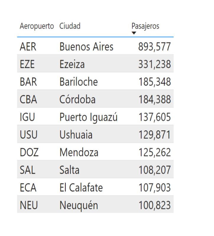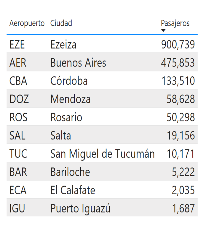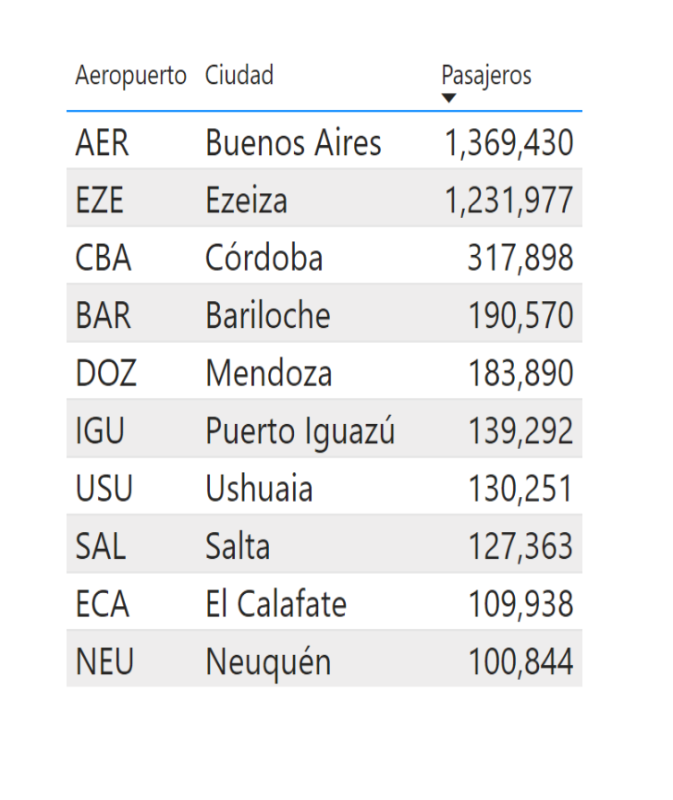 Total de los dos mercados, AEP sigue primero. Córdoba ahí le gana el tercer lugar a Bariloche por el peso de lo internacional. Lo mismo pasa con Mendoza que queda por encima de Ushuaia