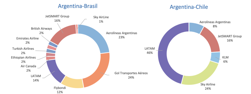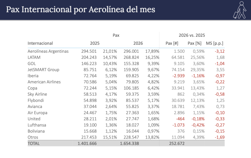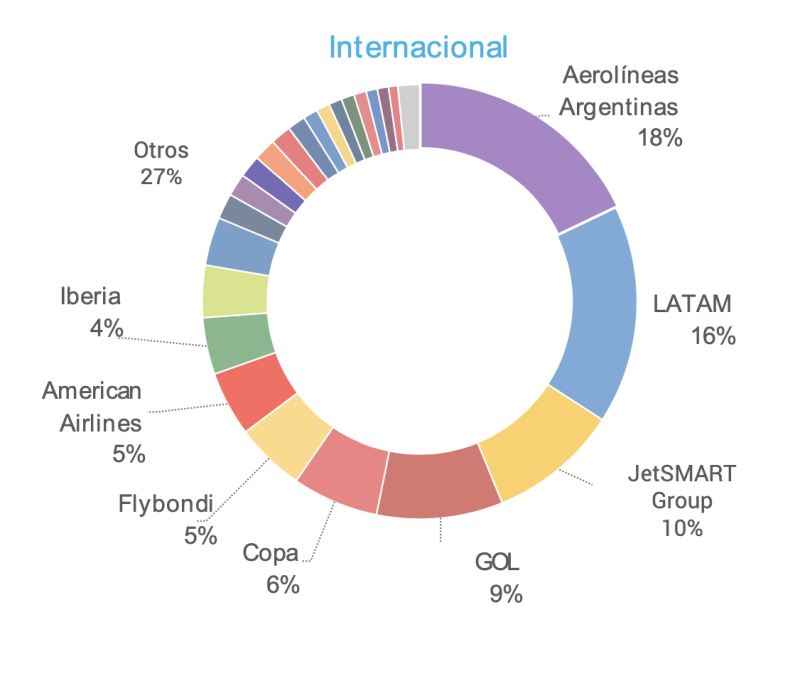 En el total internacional Aerolíneas tiene el 18% y cerca quedó Latam con el 16
