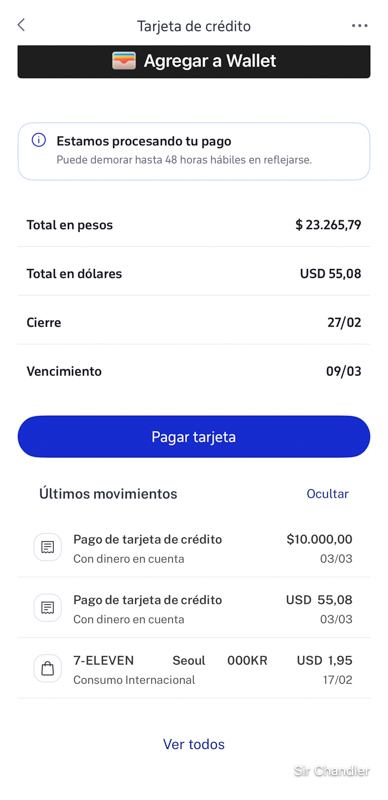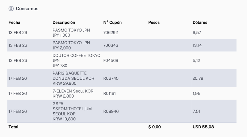 También muy simple. El resumen es muy claro y la tarjeta funcionó sin problemas en todo el viaje. Por eso si tienen Apple Pay o Google Wallet anda muy bien. Para el caso de Apple es muy cómoda para cargar la PASMO (la SUBE japonesa) y fue la única que no me dio rechazos en Japón como conté en este post.