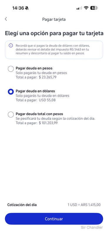 Entonces fui a pagarla y puse sólo la deuda en dólares
