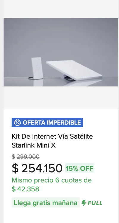 - El Kit MINI de Starlink https://mercadolibre.com/sec/19Cbrm6