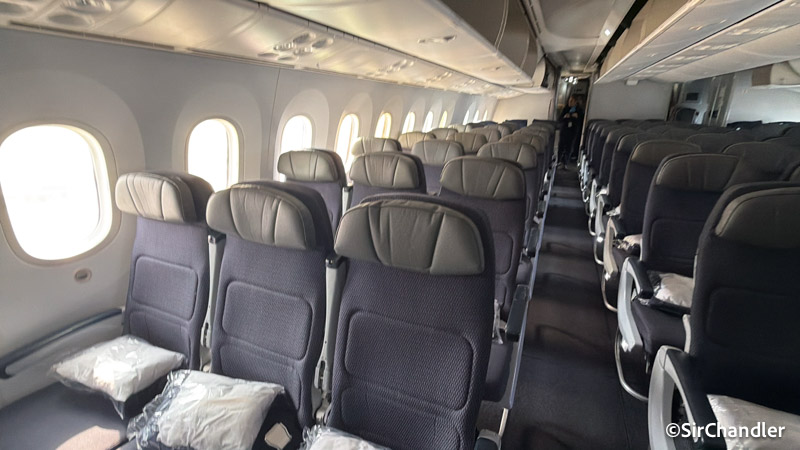 Este 787 no tenía área de descanso para la tripulación por lo que estaban bloqueados los últimos 5 asientos