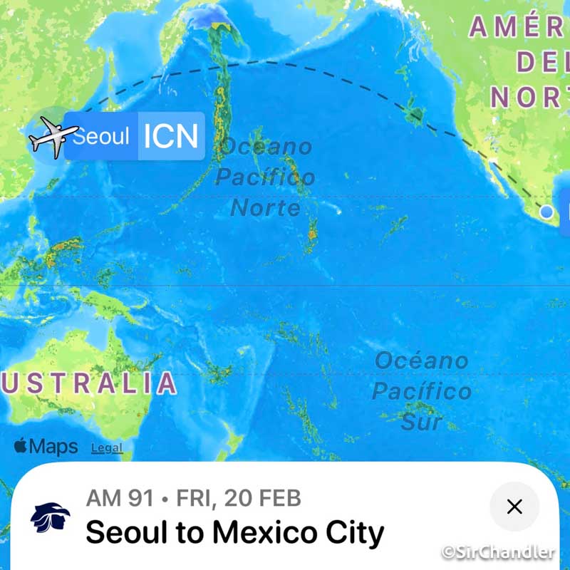 El final de nuestro viaje familiar por vacaciones fue en Seul. Desde ahí tuvimos que volver a casa y había comprado ese regreso en el sitio de Latam, que me vendió el primer tramo en código compartido con Aeroméxico, quien operó ese vuelo.